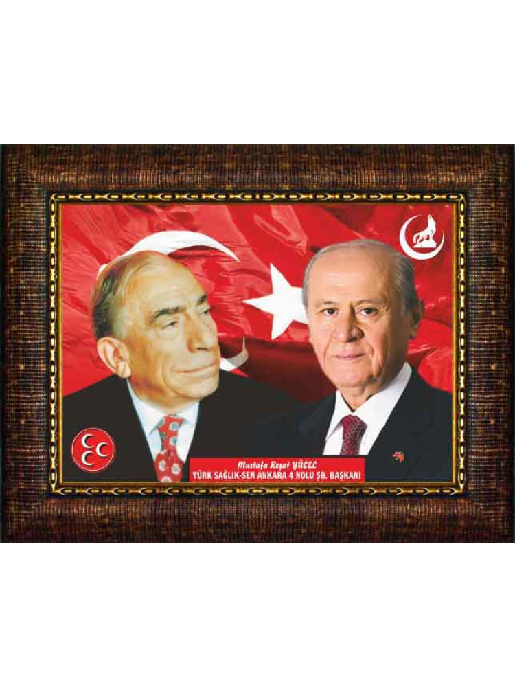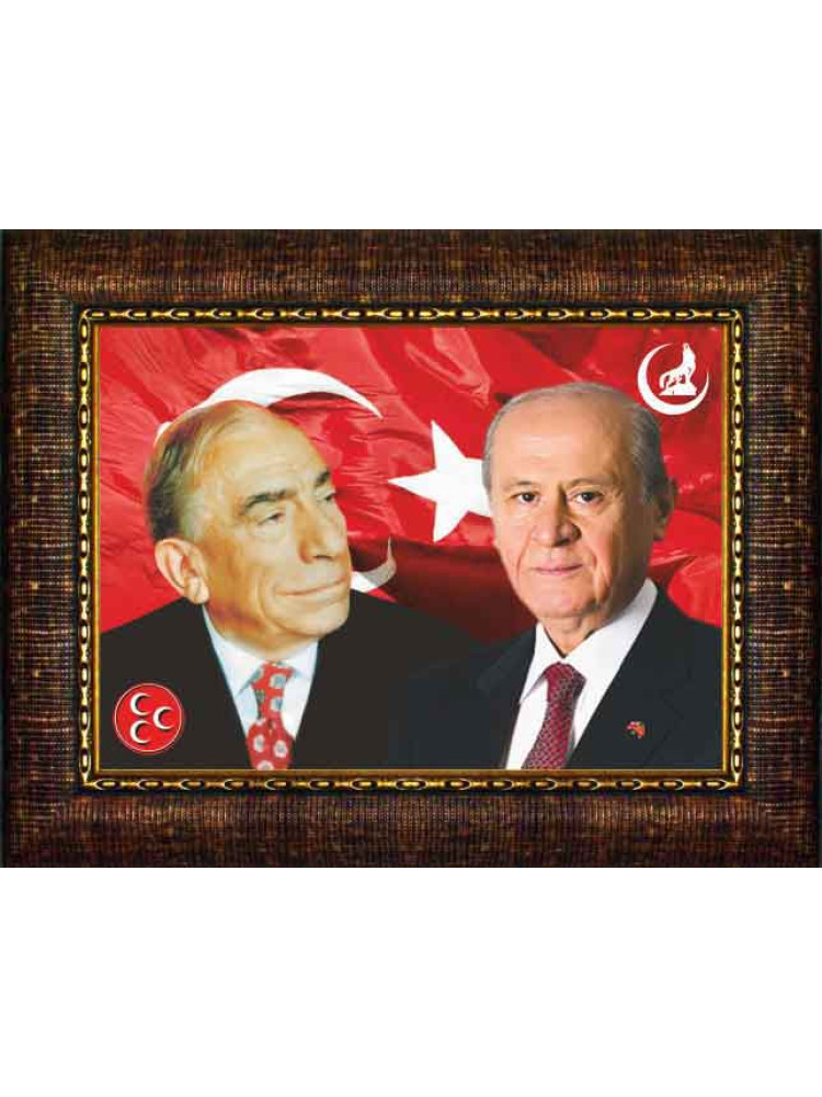 Yüksek çözünürlükte net ve kaliteli basılmış en güzel Devlet Bahçeli ve Alparslan Türkeş yanyana resmini mhp reklamı amacıyla parti odası, ofis ve makam odası için çerçeveli resim olarak büyük boy satın alabilirsiniz.