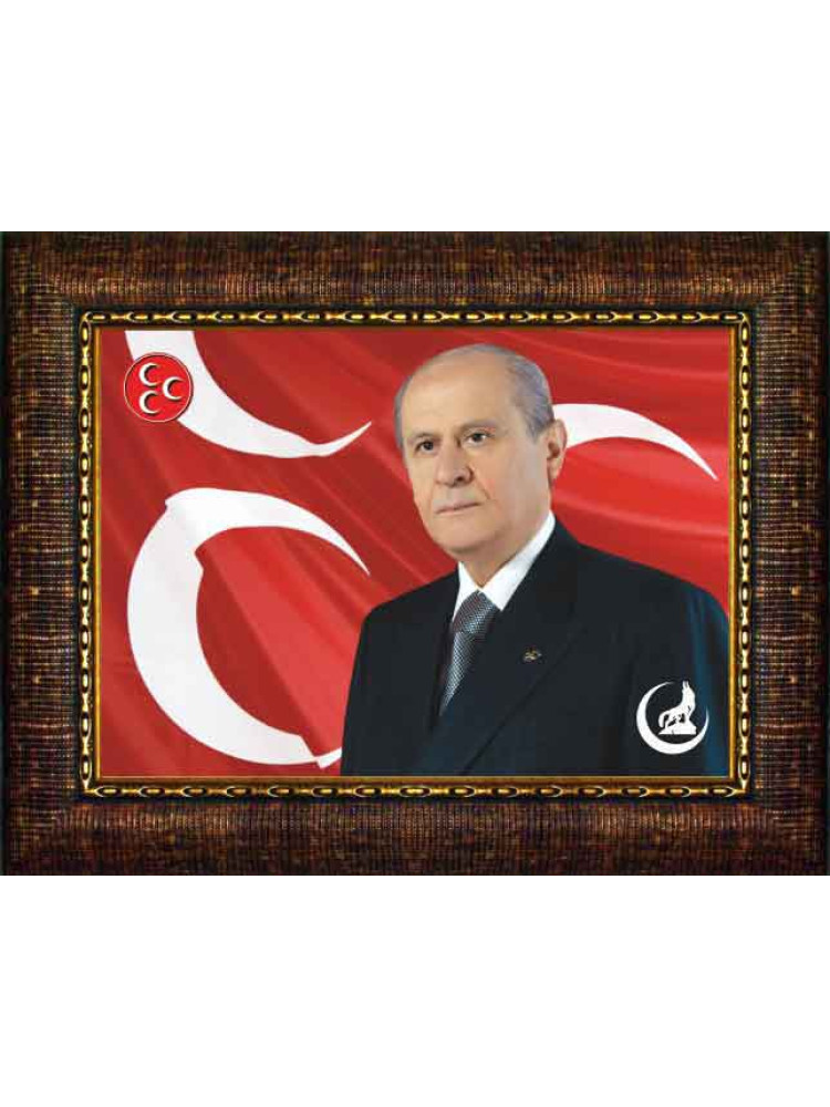 Yüksek çözünürlükte net ve kaliteli basılmış en güzel Devlet Bahçeli resmini mhp reklamı amacıyla parti odası, ofis ve makam odası için çerçeveli resim olarak büyük boy satın alabilirsiniz.