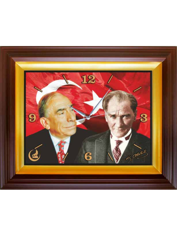 Alparslan Türkeş ve Atatürk Yan Yana Resimli Saat, Dikdörtgen Duvar Saati 46x37cm MHPDSD05TAY