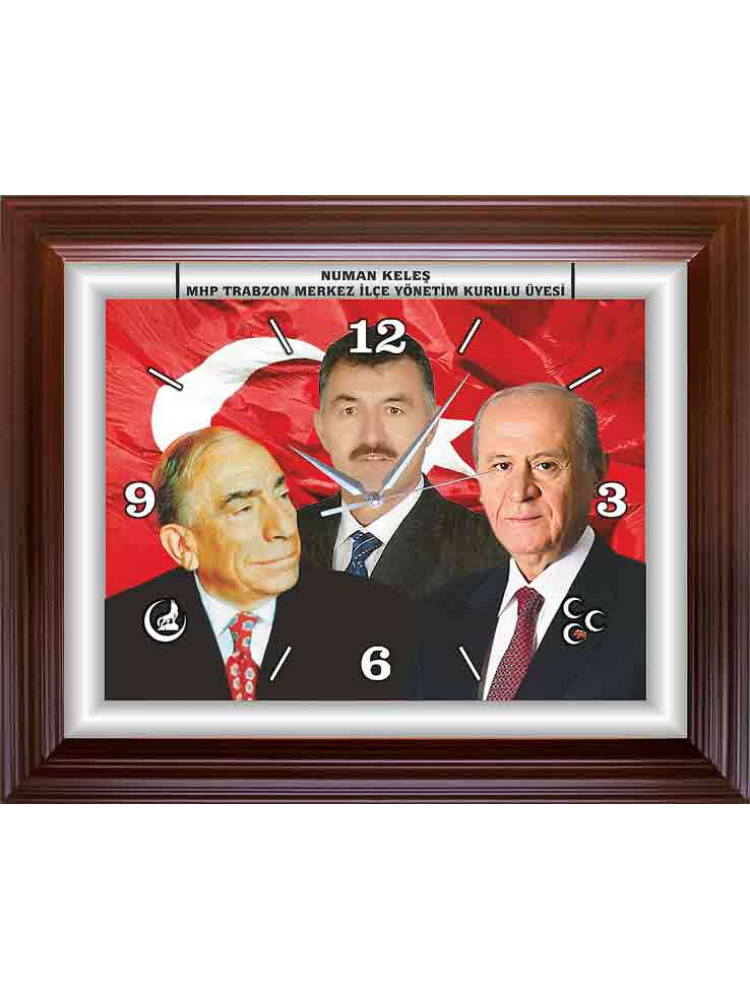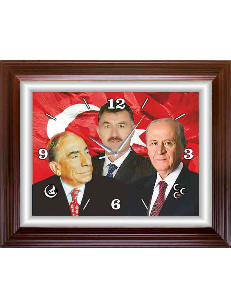 Devlet Bahçeli, Alparslan Türkeş ve Sen Yan Yana Montajlı Kişiye Özel Resimli Saat, Dikdörtgen Duvar Saati 46x37cm MHPDSD08BTM