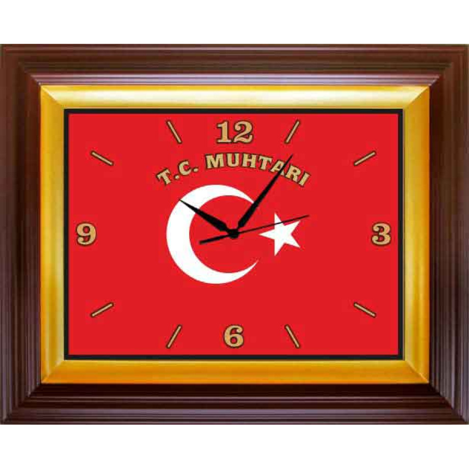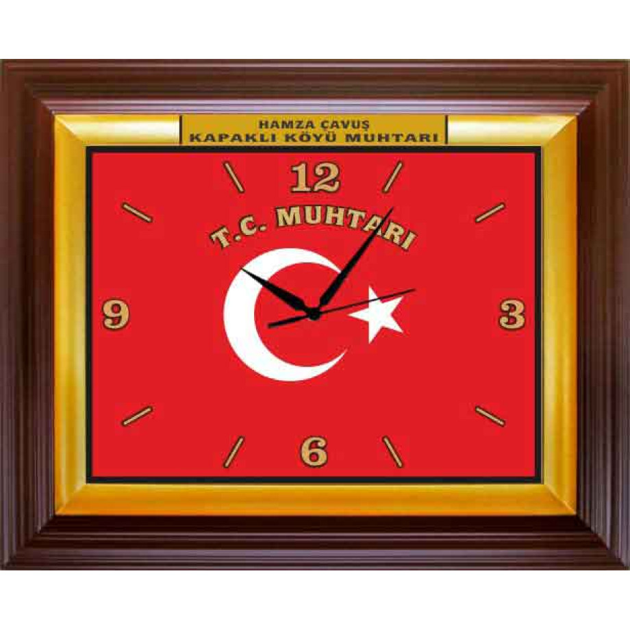 Türk bayrağı resimli ve üzerinde T.C. Muhtarı yazılı dekoratif dikdörtgen duvar saatini muhtar ve muhtarlık için en güzel duvar saati olarak satın alabilirsiniz.